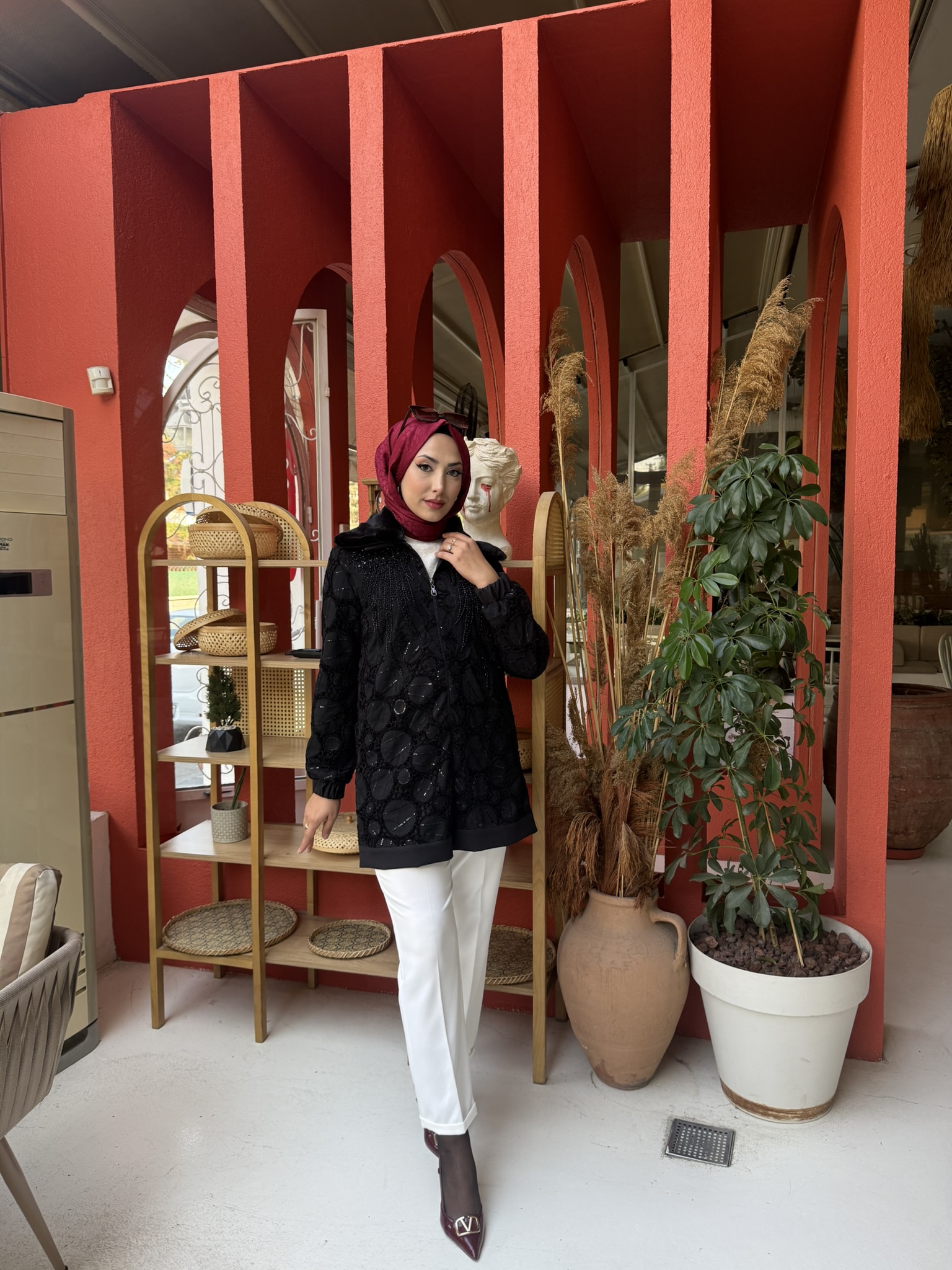 GÖGÜS KISMI TAŞ VE BONCUK DETAYLI