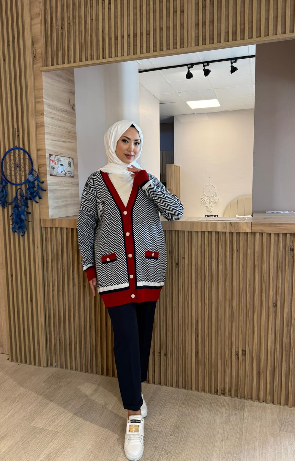 NOQTA 7009 TRİKO HIRKA KIRMIZI