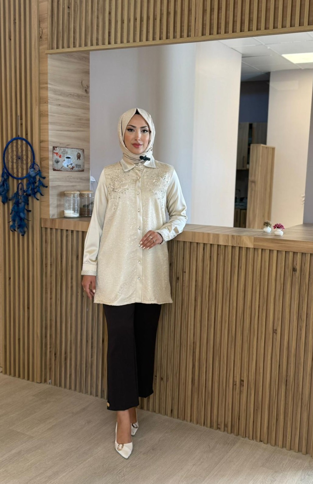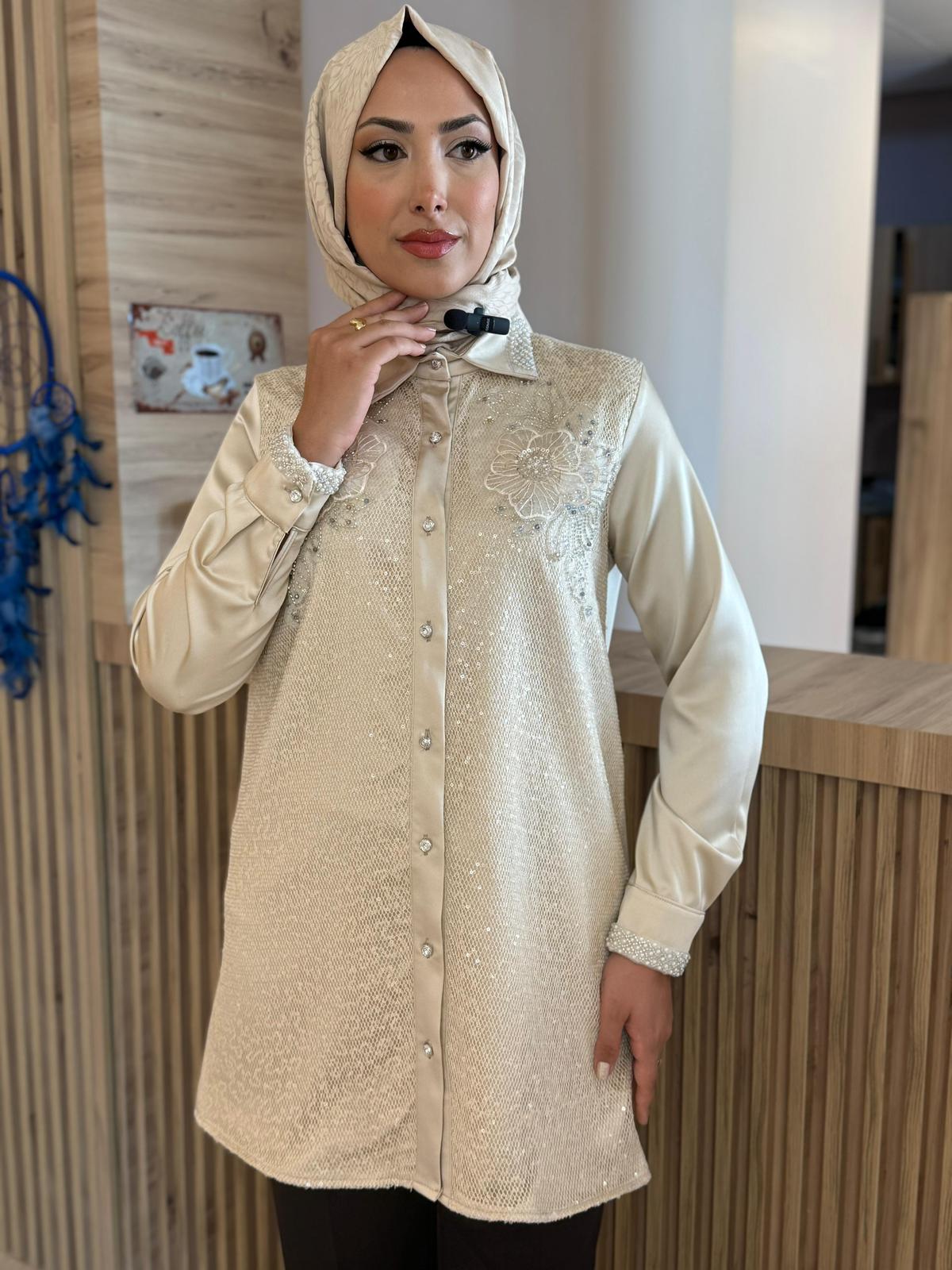 YAKA BONCUK İŞLEMELİ TUNİK