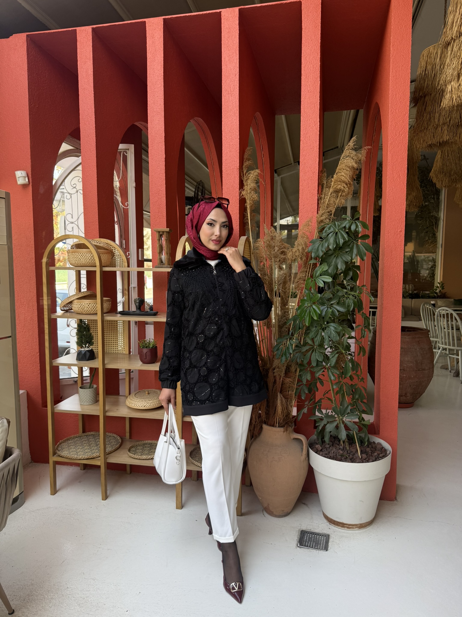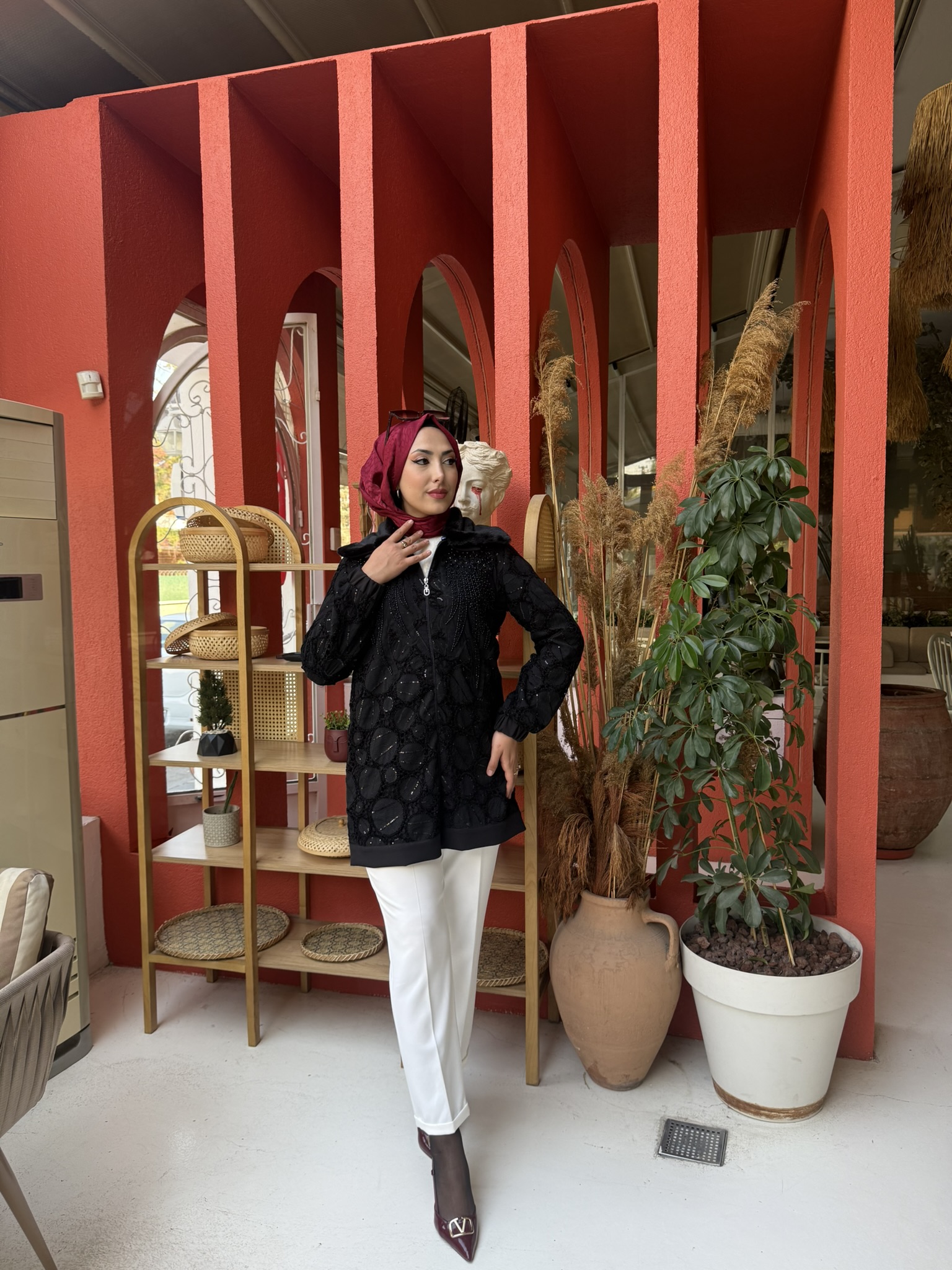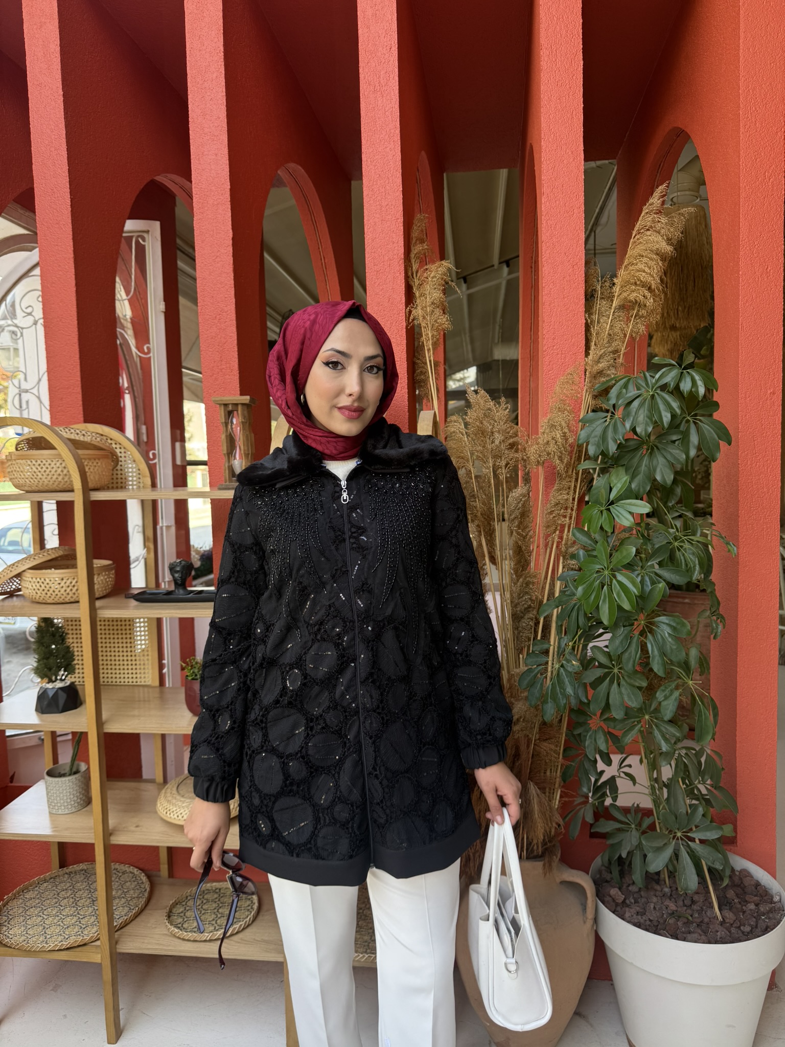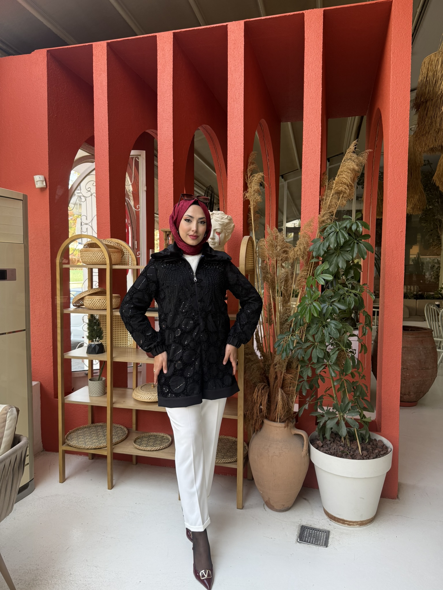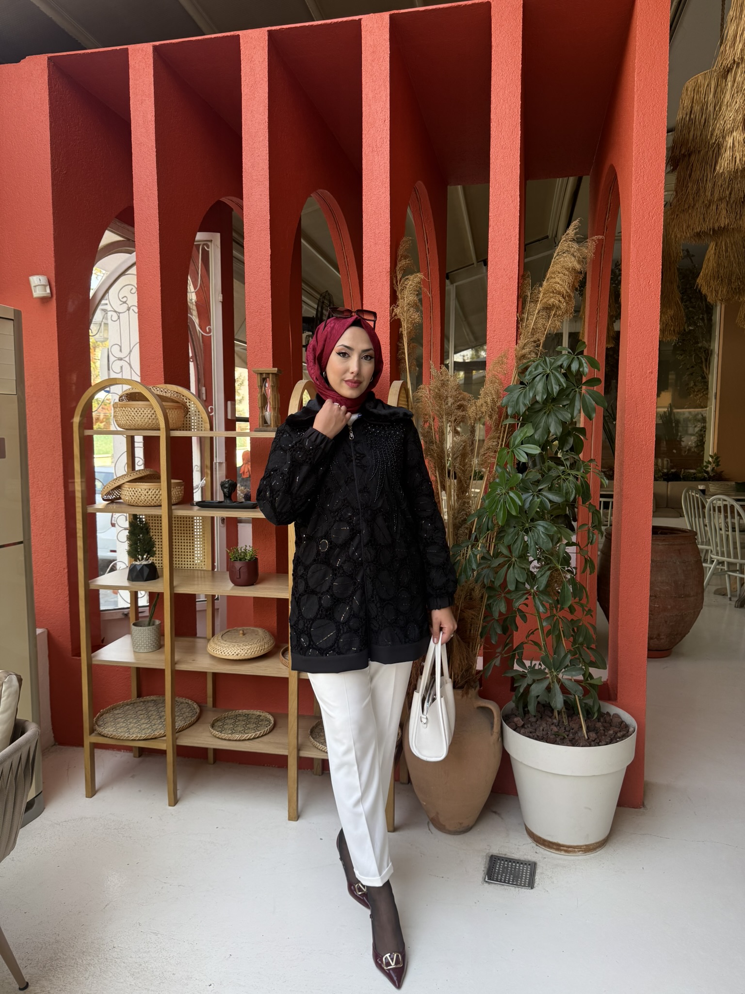 GÖGÜS KISMI TAŞ VE BONCUK DETAYLI