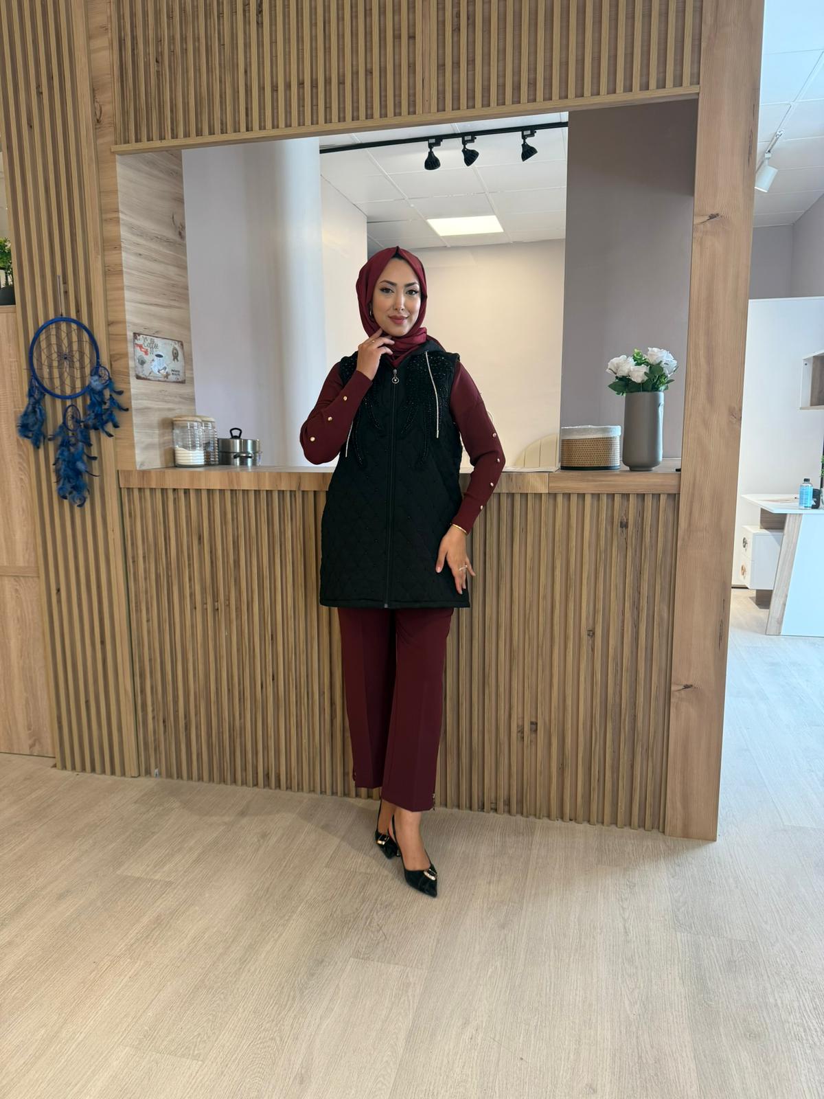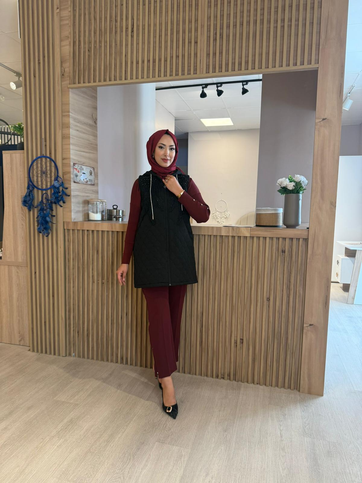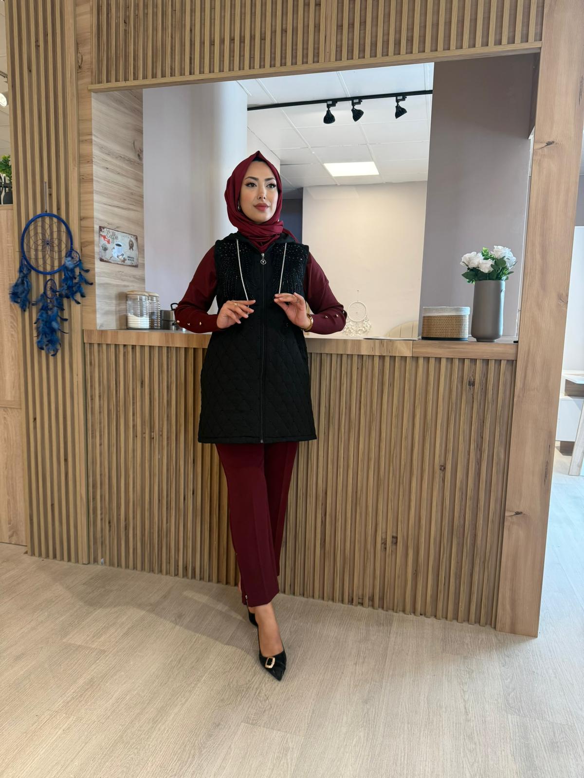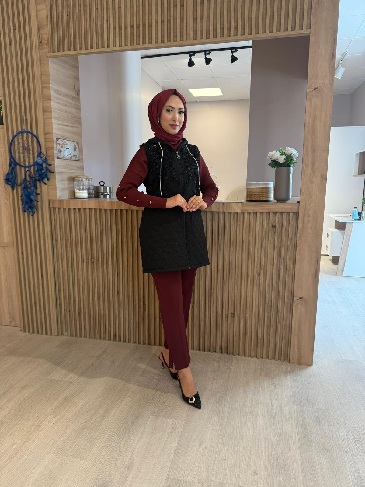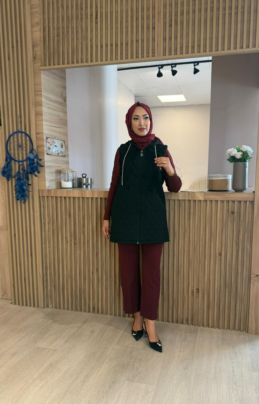 TAŞ İŞLEMELİ KAPİTONE YELEK